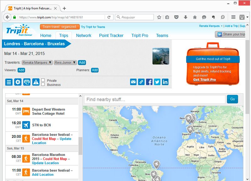 Além disso, se você permitir que ele tenha acesso ao seu email, ele reconhece algumas reservas e já inclui automaticamente no seu planejamento de viagem. Use no celular, tablet e online e compartilhe as informações com seus companheiros de viagem. Na versão paga, ele avisa até da redução de preços no seu voo (o que pode te fazer economizar algum dinheiro pedindo reembolso).