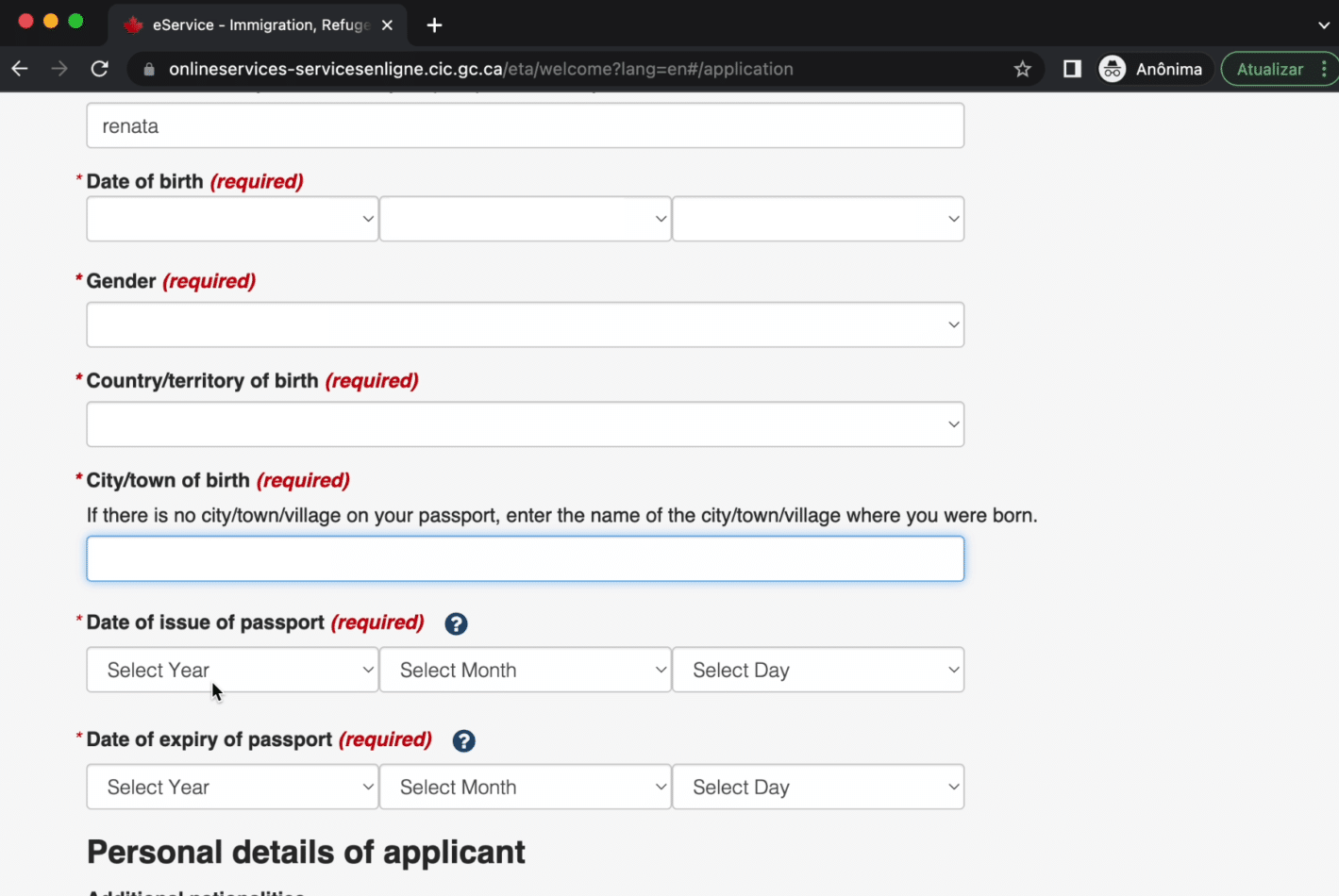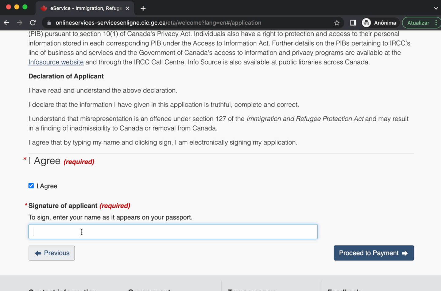 2 – Acesse o site do consulado do Canadá para iniciar o preenchimento